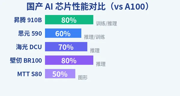 📊 国产 AI 芯片性能对比(vs A100)