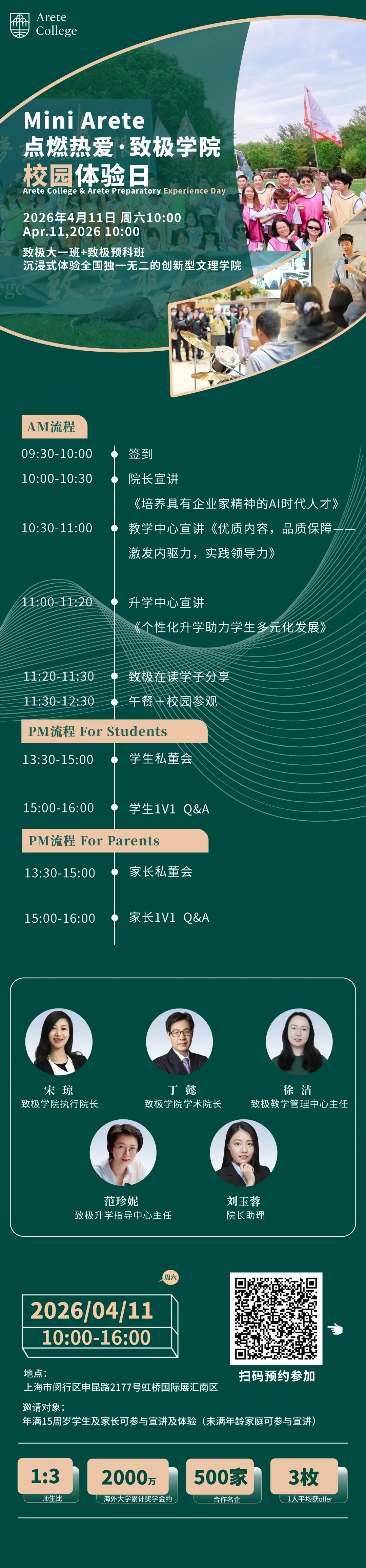 活动当天,您将深度了解致极 “保护内驱力、激发创新力、锻造领导力,让孩子成为自己人生的CEO” 的先进理念和落地举措,沉浸式体验独一无二的特色课程,获取最新招生与升学资讯,见证 “直通英美澳新名校” 的留学新路径如何为孩子赋能。