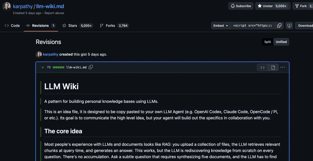 30 天后你拥有的不是 30 篇孤立的摘要,而是一个互相连接、互相引用、持续演化的知识网络。这就像复利——你的知识不仅不会遗忘,还会随着时间越来越值钱。免费的笔记软件,界面干净,适合管理大量文档。去 obsidian下载安装,5分钟搞定。把卡帕西的文档链接放到任何编译器里,让他帮助根据文档内容直接创建obsidian仓库即可https://gist.github.com/karpathy/442a6bf555914893e9891c11519de94f/revisions?short_path=4c66555#diff-4c66555dd402cc5d67a52a326ac73c0e13d09c5e3e6e2e32967808d23a576025