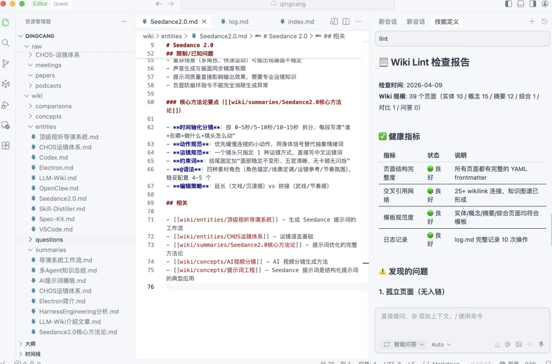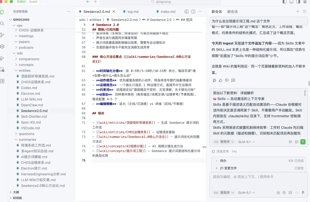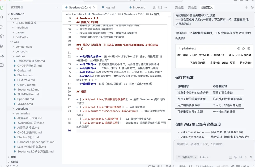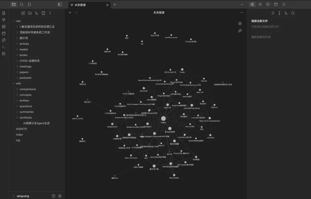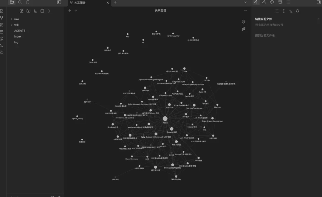 - 在 Obsidian 里打开 wiki/,浏览整理好的知识