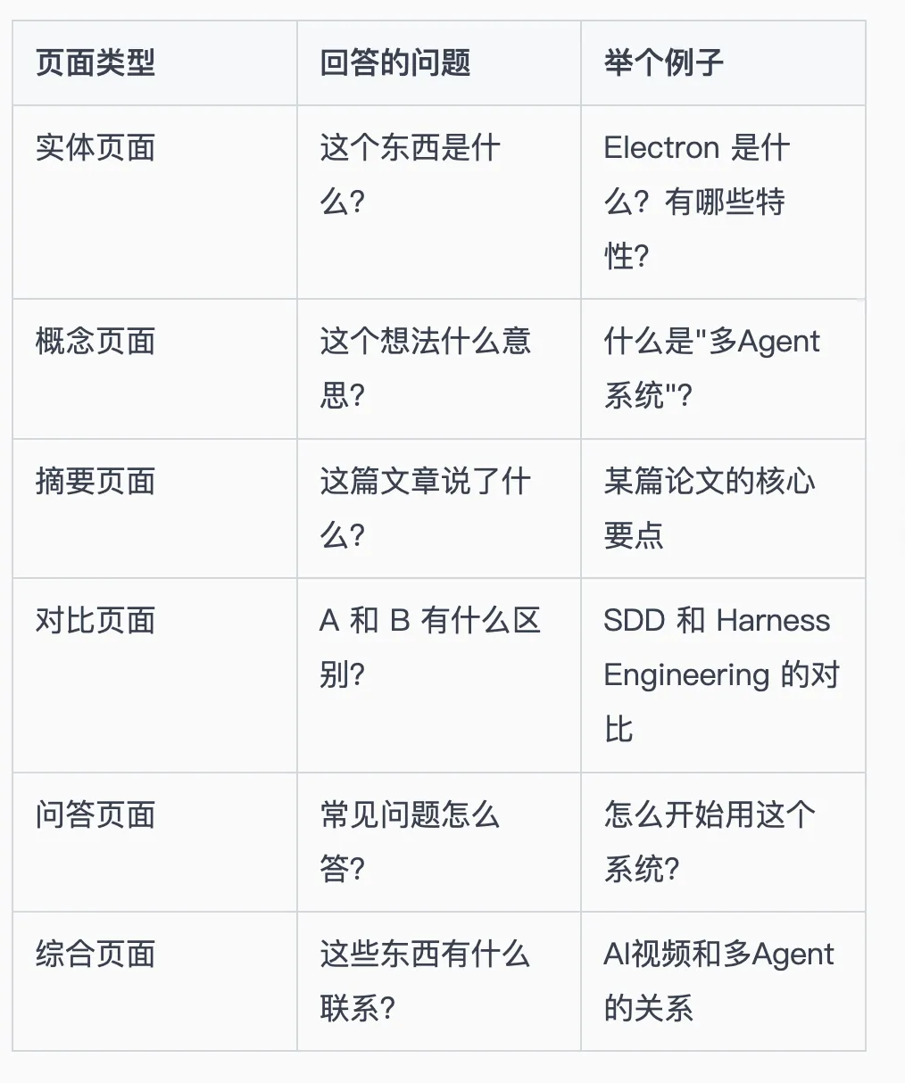 - 更新旧页面 — 如果新资料和旧知识有关系,旧页面也会更新