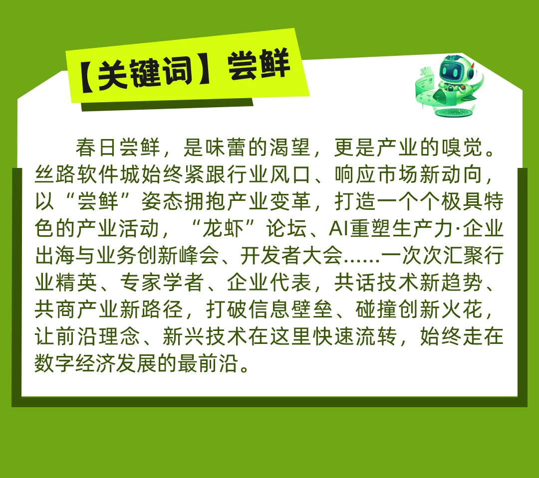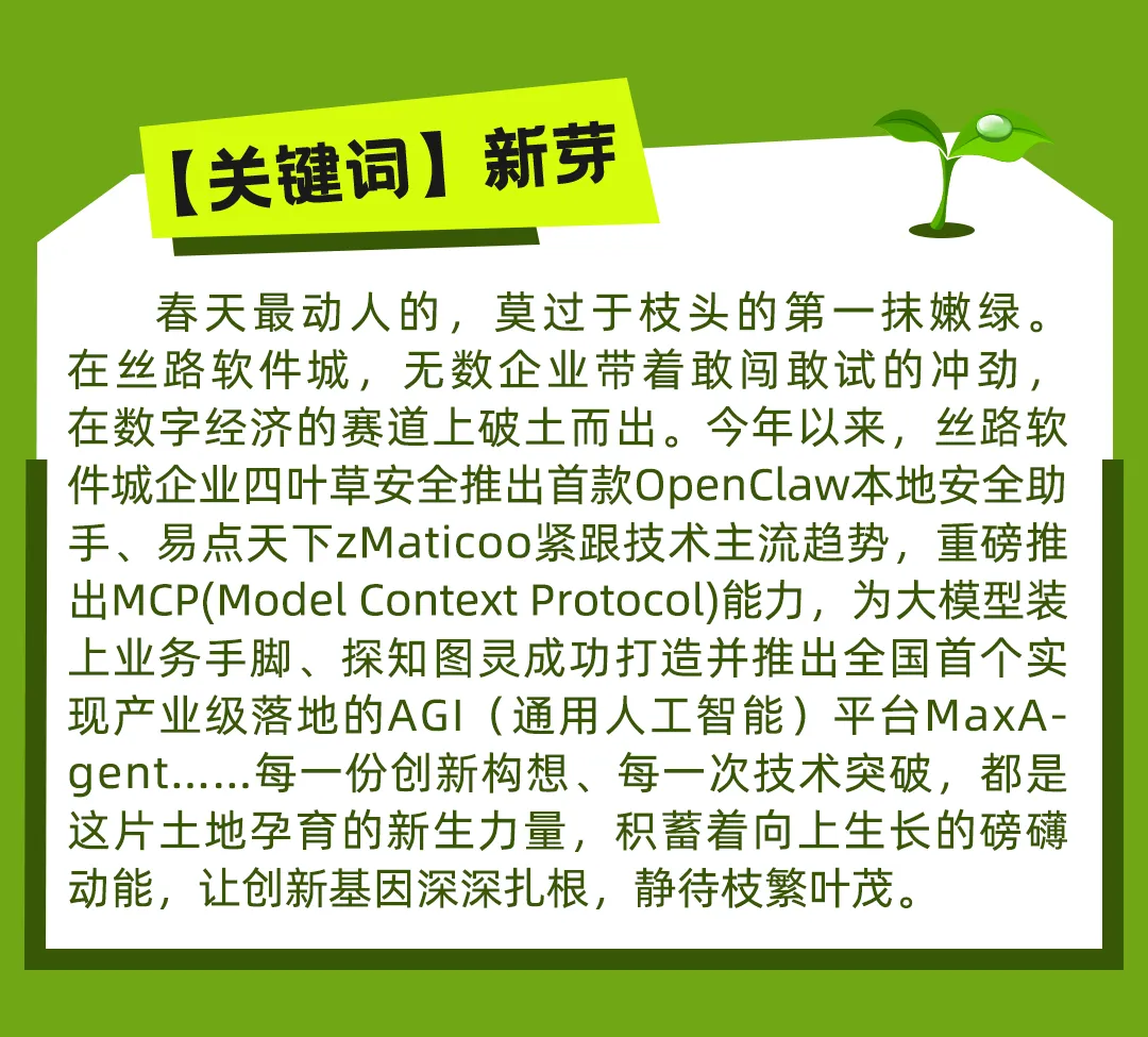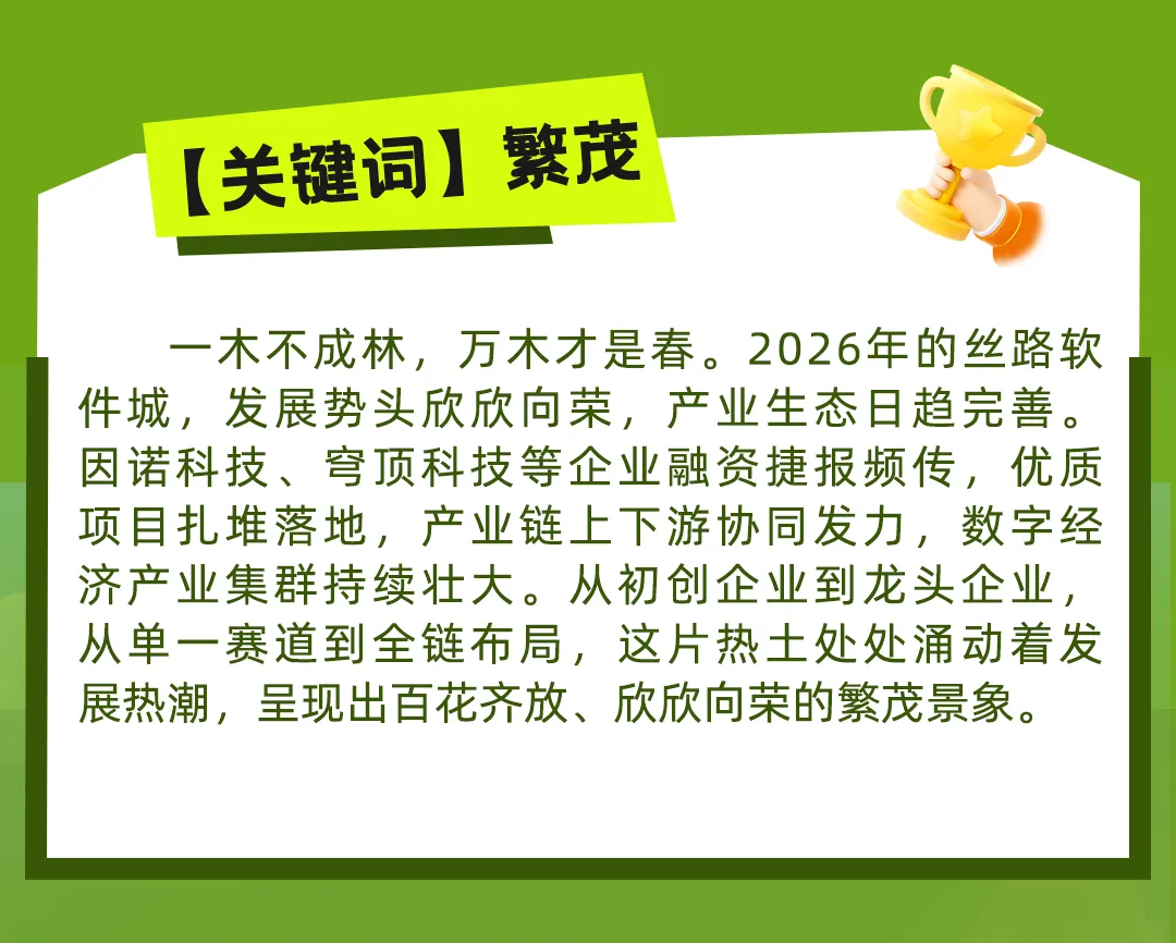开盲盒啦!2026丝路软件城春日关键词 解锁科创生长力<End>▼编辑:娅 娅初审:尉 鹏二审:孟 媛终审:鞠 博如有侵权,联系删除点击查看往期文章精选2025奋楫笃行,2026再启华章!【码上人生】苏超:技术开拓与诗意栖居,一位架构师的“双轨”人生【码上人生】廖虎臣:深耕美林数据十六载,是程序员,是开拓者,是山河旅人【码上人生】卢敬陶:工作是高效算法,生活是浪漫代码