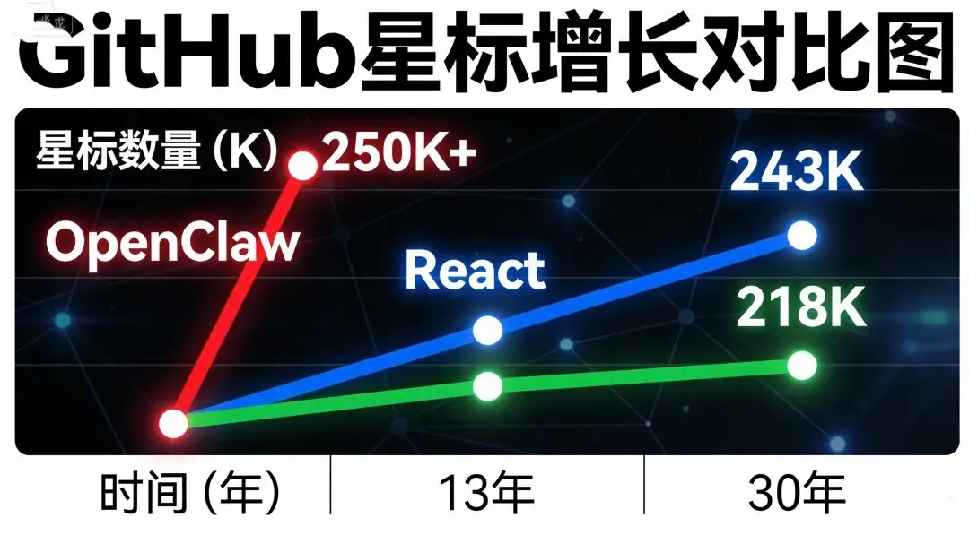 2025年11月:项目诞生,只有1个开发者,代码量几百行2025年12月:改名风波(后文详述),社区开始形成2026年1月:星标破10万,两周之内2026年2月:创始人加入OpenAI,项目转交基金会,大厂纷纷适配2026年3月3日:星标突破25万,正式登顶GitHub
