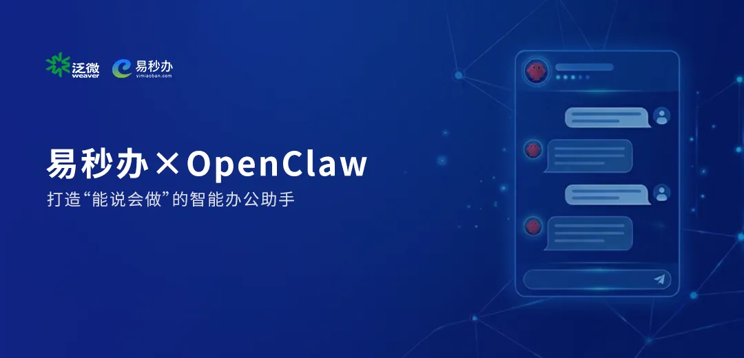 泛微·易秒办作为可私有化部署的即时通讯与移动门户平台,始终致力于为组织构建安全、统一、高效的智能沟通与协作环境。近日,易秒办已能够快速集成OpenClaw,并且使用OpenClaw的AI问答与任务执行能力,旨在为企业装上能“动手执行”的AI助手,让智能办公从“能说会道”迈向“能干实事”。