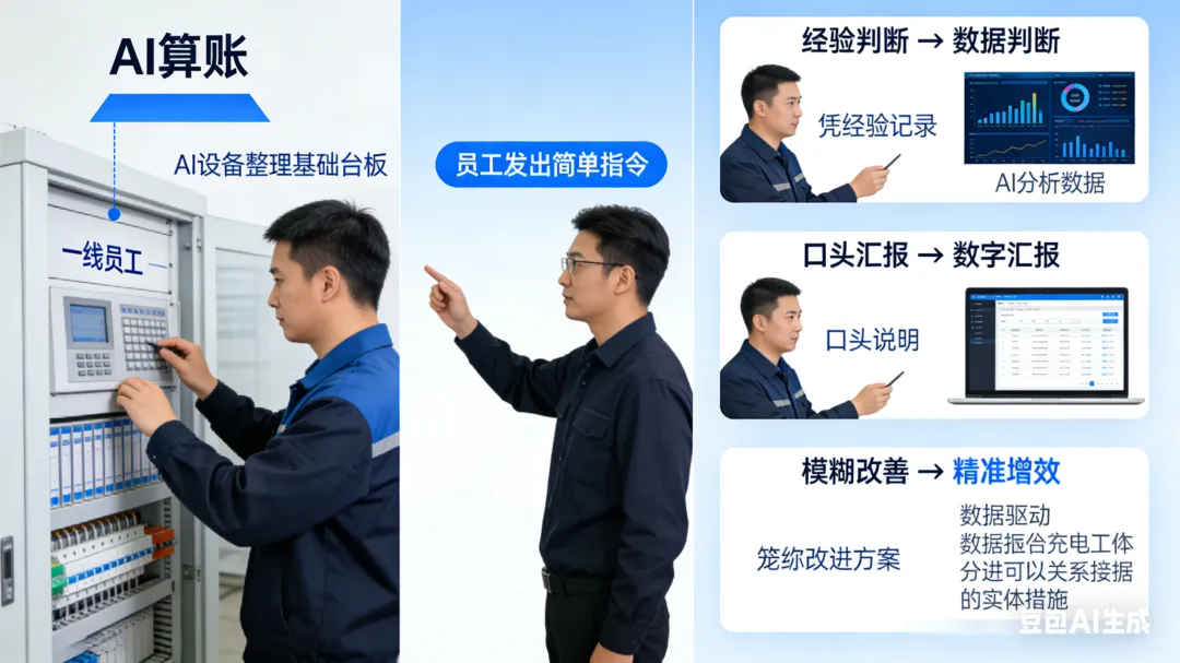 很多一线员工提交的改善提案、EIT会议讨论内容、EIP改善方案,常常停留在口头描述:设备耗电多、物料损耗大、人员效率偏低、流程存在浪费。文字写了一大段,问题描述很详细,整改措施也罗列齐全,却缺少核心数据支撑,没有精准算账。没有数据的改善,只是主观感受;算不清成本的建议,很难通过审批、很难落地执行、很难核算收益。传统算账,一直是一线岗位的痛点:人工统计台账繁琐、数据零散、核算公式复杂、耗时耗力、容易出错,复盘周期长,无法快速算出浪费成本、节约金额、投入产出比。而当下,AI正在重构制造业的成本核算逻辑:用数据代替感觉,用演算代替估算,用精准台账代替主观判断,帮一线管理者算清三本账:浪费账、节约账、收益账,让每一条增效建议,都有理有据、数字落地、具备决策说服力。