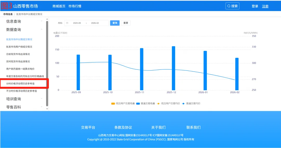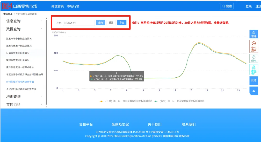 在数据页左侧导航栏,找到【数据查询】→【分时价格浮动项历史参考值】(图3左侧菜单),点击进入分时数据页面(图4)。