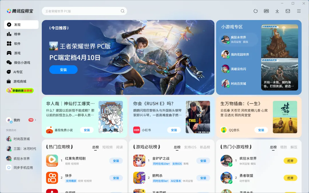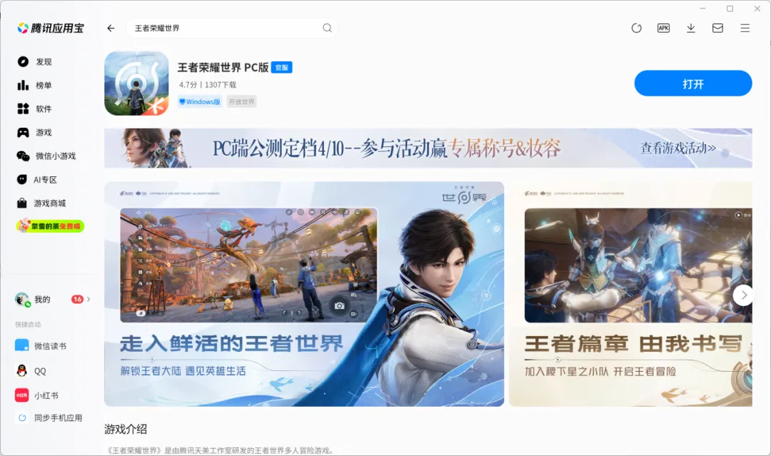 应用宝电脑版现已支持预下载《王者荣耀世界》PC版
