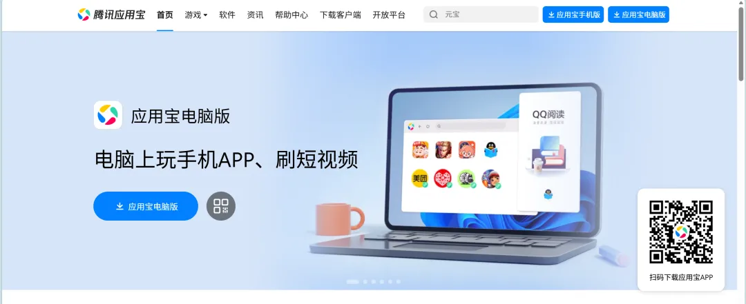 Step 1:前往应用宝官网(https://sj.qq.com/)下载应用宝电脑版