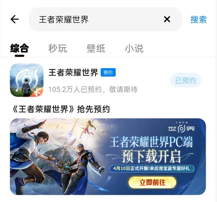 Step 2:在应用宝APP内,搜索「王者荣耀世界」进行预约