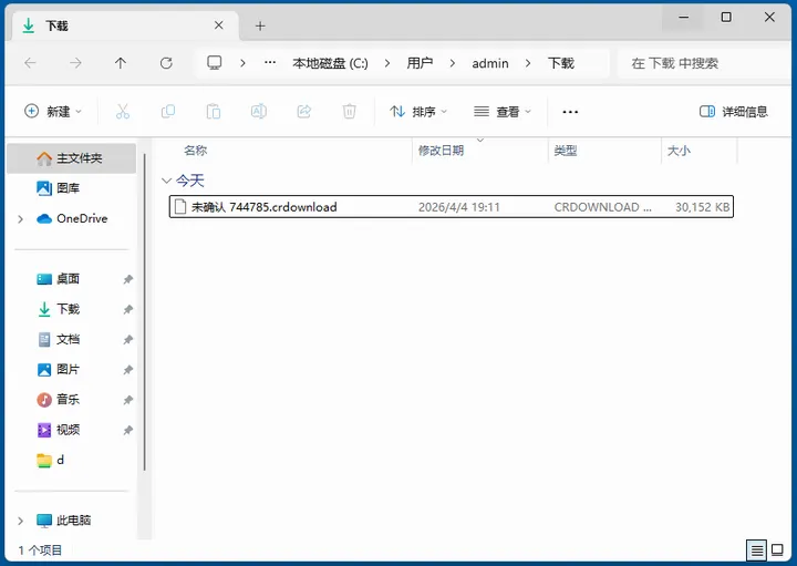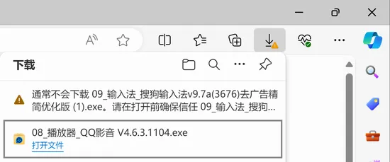 Edge浏览器是先执行下载,待其完成后才进行安全检测的。因此当出现“通常不会下载”提示时,文件其实已下载完毕了。在默认下载位置中,可看到类似下图所示的文件。