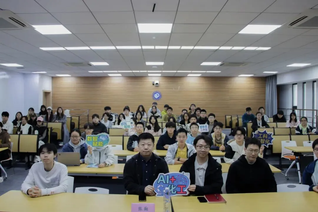 教授首先对华理化工的优势方向追根溯源,点明了学校在反应器领域的传统优势地位,强调了传承经典化工理论、夯实专业根基的重要性;接着以传统化工流程面临的效率瓶颈、研发周期长等现实困境为切入点,系统阐释了 AI 技术在调用大数据、大模型辅助反应器釜设计制造、工艺优化、新材料研发等环节的高效赋能作用,清晰展现了 AI 为传统化工转型升级带来的全新机遇;同时,教授结合自身深耕交叉领域的研究经历,以芳香分子合成与应用、抗癌药物研发流程等具体前沿实例展开深度讲解,用通俗易懂的语言拆解了 AI 在化工科研中的落地应用,让同学们直观感受到了 “AI + 化工” 的巨大潜力与发展前景,为大家指明了传统工科数智化转型的学习方向与科研路径。