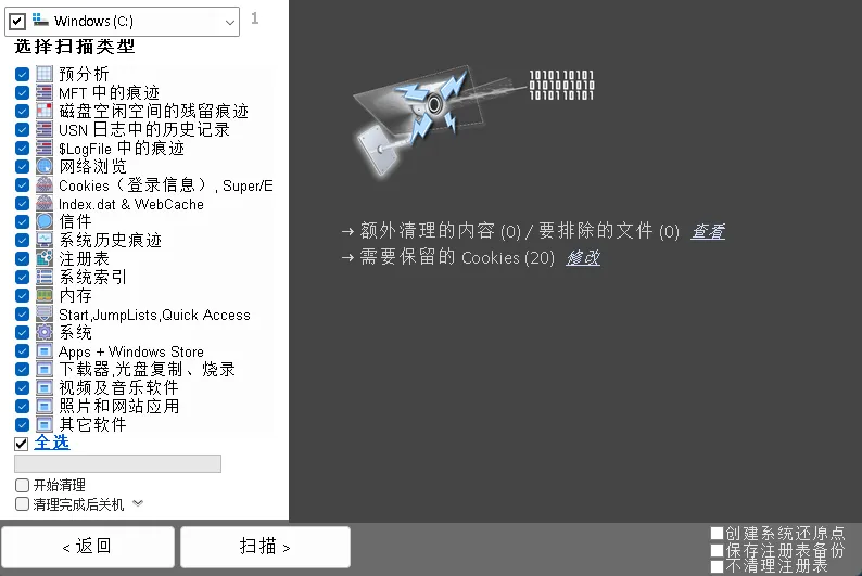 功能就这么多,简单得很,那么直接来一次全面清理。
