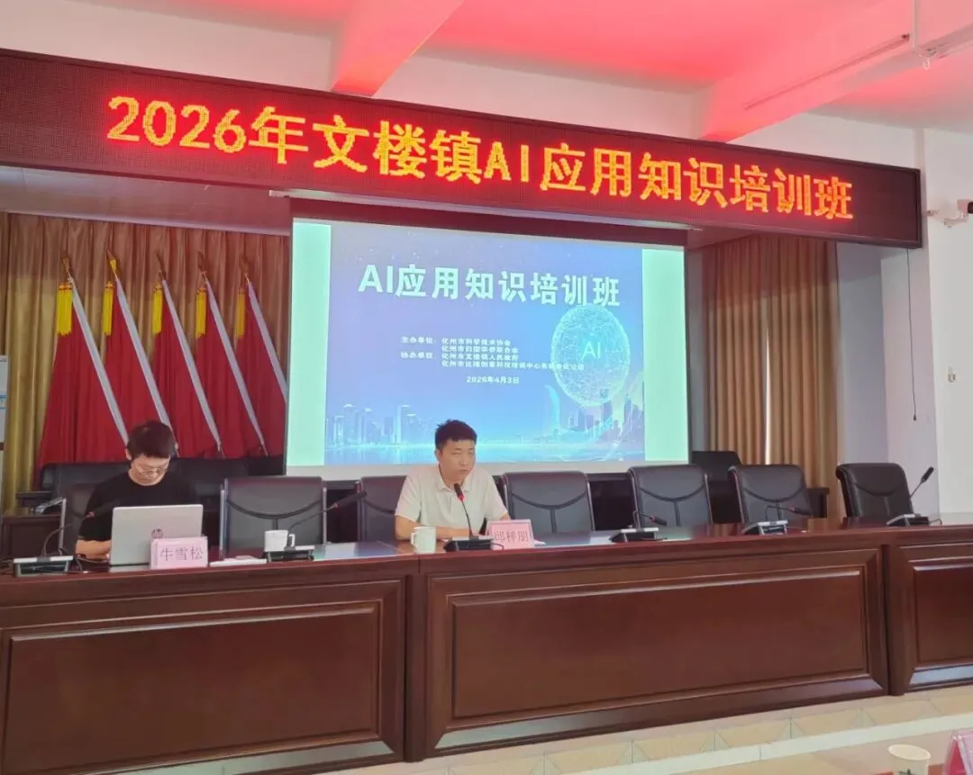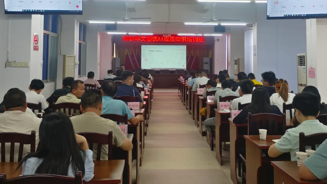 4月3日上午,由市科协、市侨联、文楼镇政府联合主办的“2026年文楼镇AI应用知识培训班”在镇政府六楼会议室举行。市科协主席颜晓燕,市侨联主席何仁静、副主席陈文邦,文楼镇党委委员邱梓朋出席活动,文楼镇各村、社区基层工作人员、侨界群众代表及农村创业青年参加培训,共学AI技能,共探数字未来。
