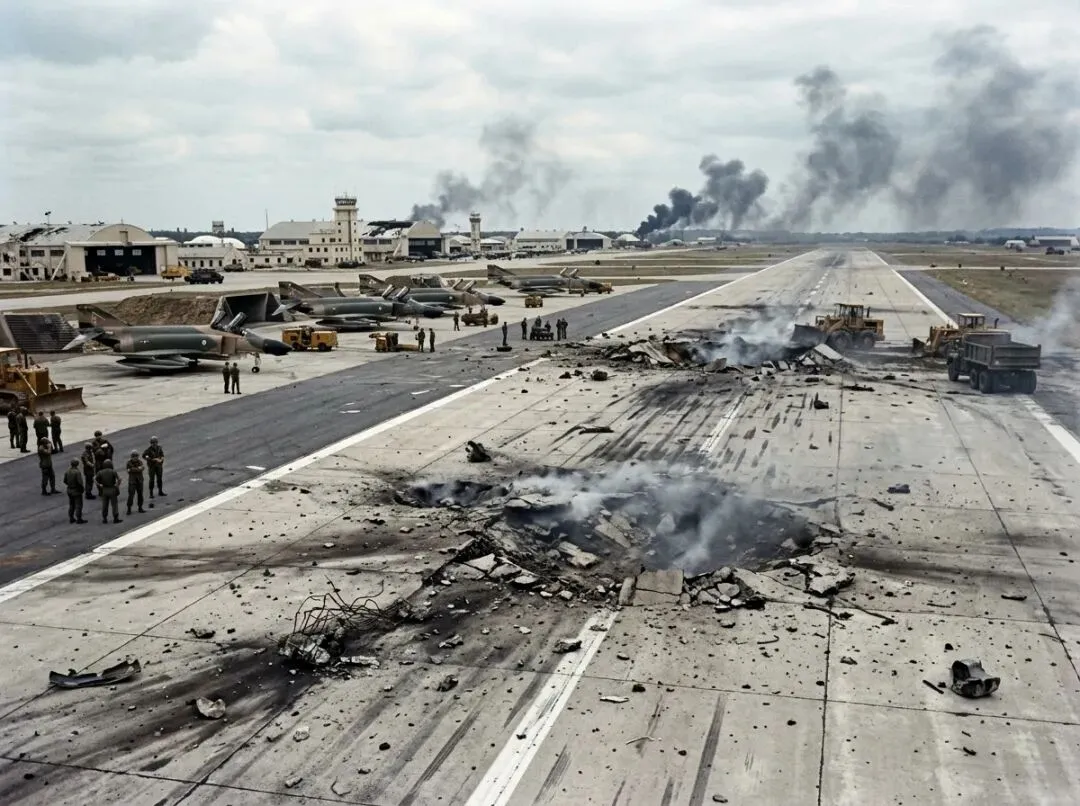 以前打仗,空军最头疼的莫过于那几条长长的跑道,你想啊,机场目标那么大,开战头一小时,对方的导弹肯定会跟下雨一样往跑道上招呼,一旦跑道被炸毁,几亿美金的战斗机就成了趴窝的旱鸭子,毫无用武之地。