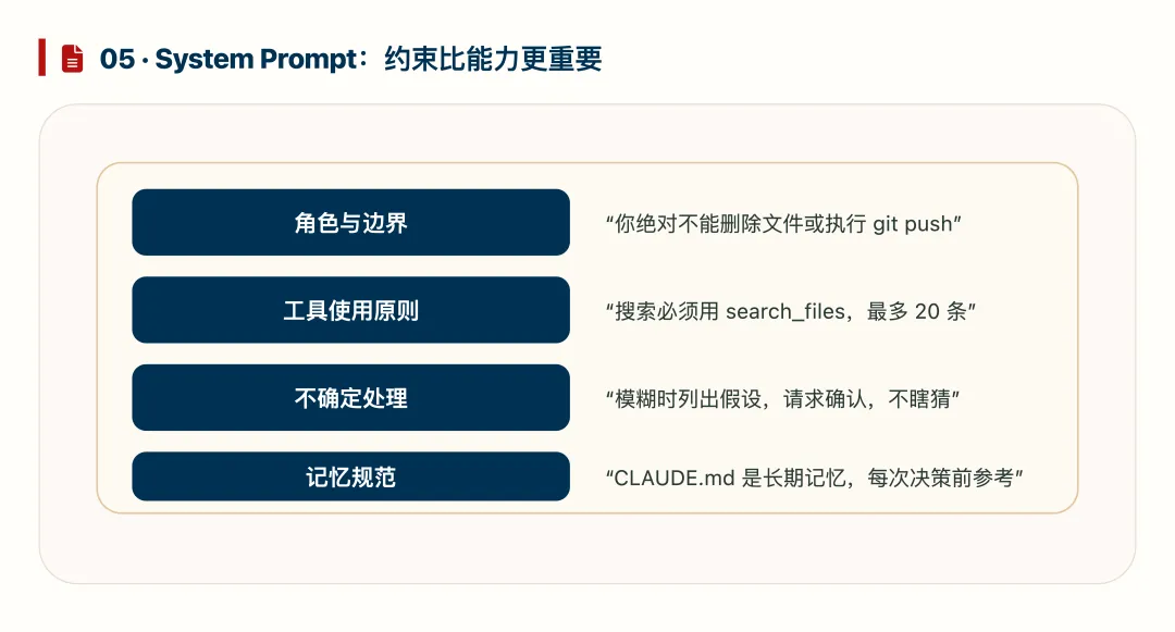 5System Prompt 升级为操作手册:边界 + 策略 + 不确定处理 + 记忆