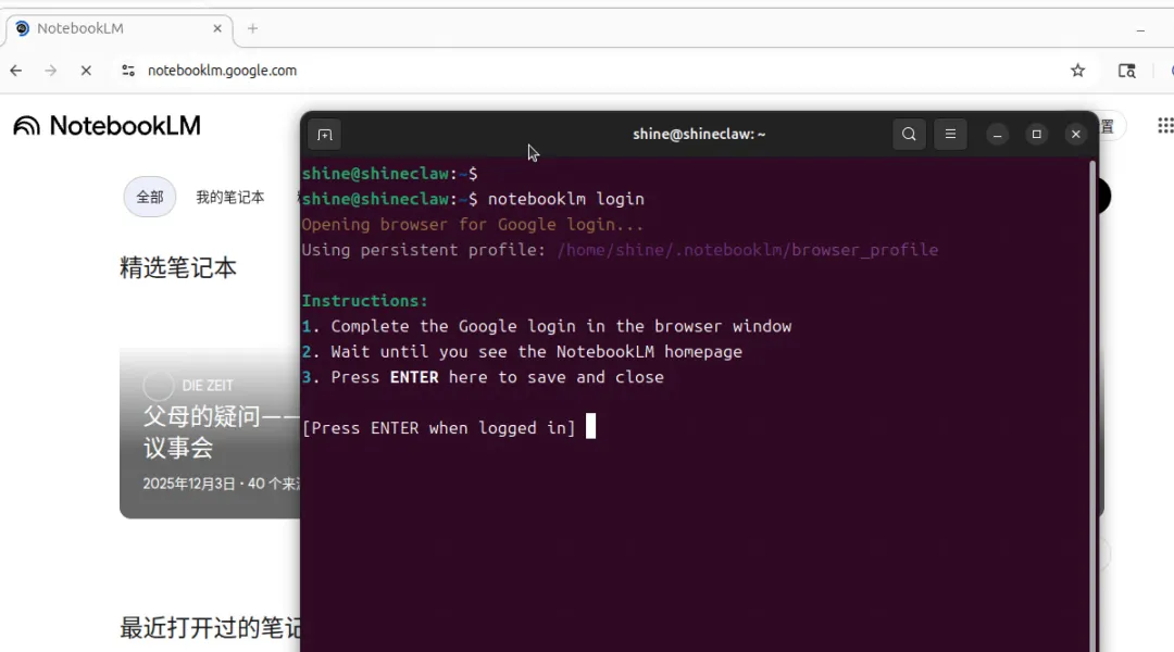 没装 [browser]版本的 notebooklm-pyPlaywright 没装好 系统缺图形界面(服务器环境)