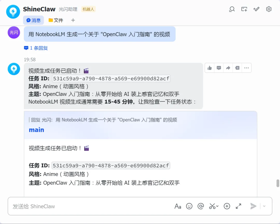 你: "用 NotebookLM 快速生成 'XXX' 的视频,看看效果"