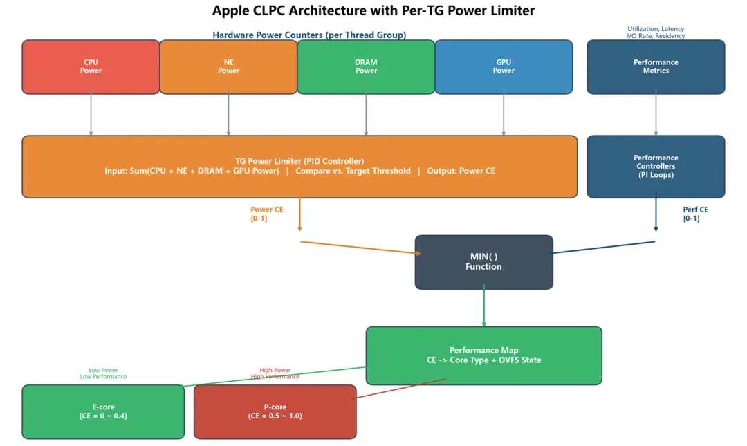 图 2:Apple CLPC 架构全景 —— 性能控制器与功耗限制器协同工作