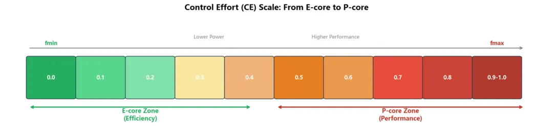 图 4:Control Effort 量表 —— 从 E-core 最低频到 P-core 最高频的连续映射