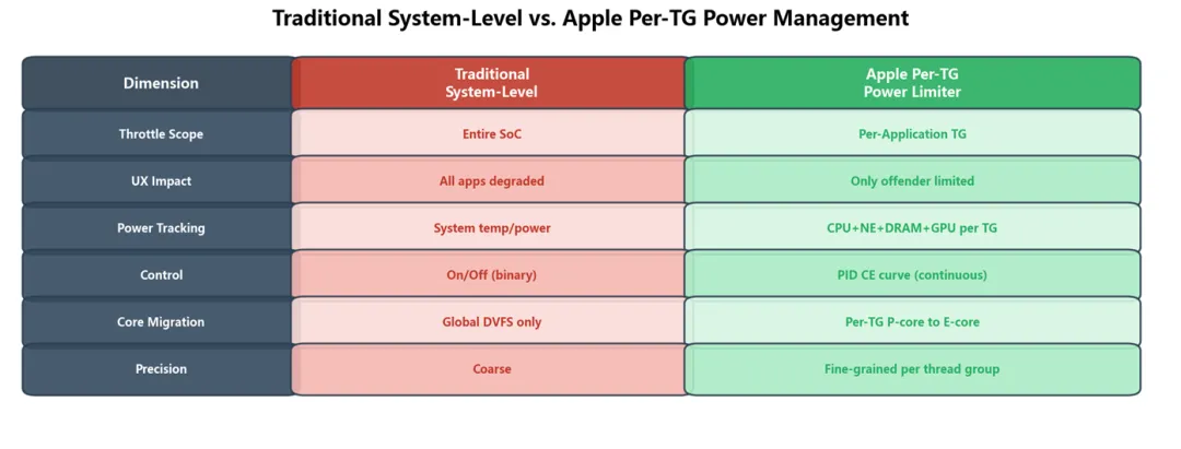 图 6:传统系统级方案 vs. Apple Per-TG Power Limiter 的全面对比