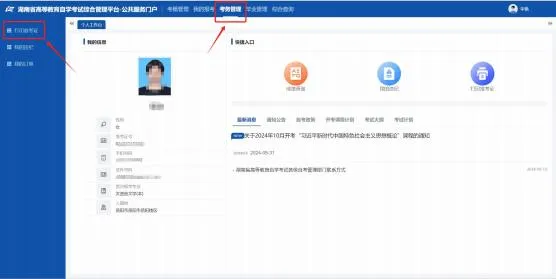 第三步,登录之后点击考务管理 - 打印准考证。在考生个人空间的界面中,会有各种功能选项,考生需要找到考务管理这一项。点击考务管理后,会弹出相关的子菜单,其中就有打印准考证的选项。点击该选项后,系统会跳转到准考证的打印页面。