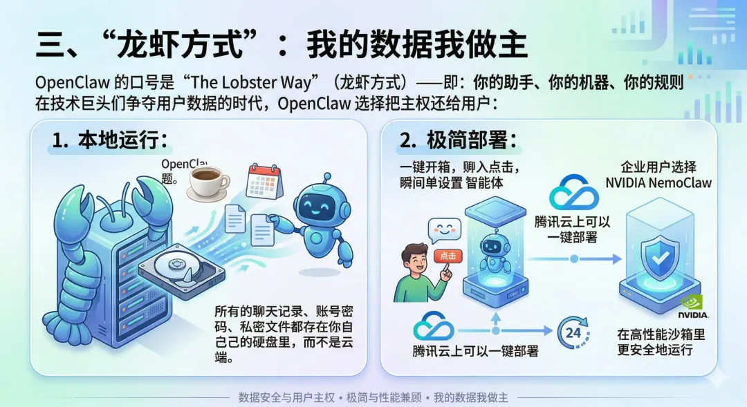在技术巨头们争夺用户数据的时代,OpenClaw 选择把主权还给用户: