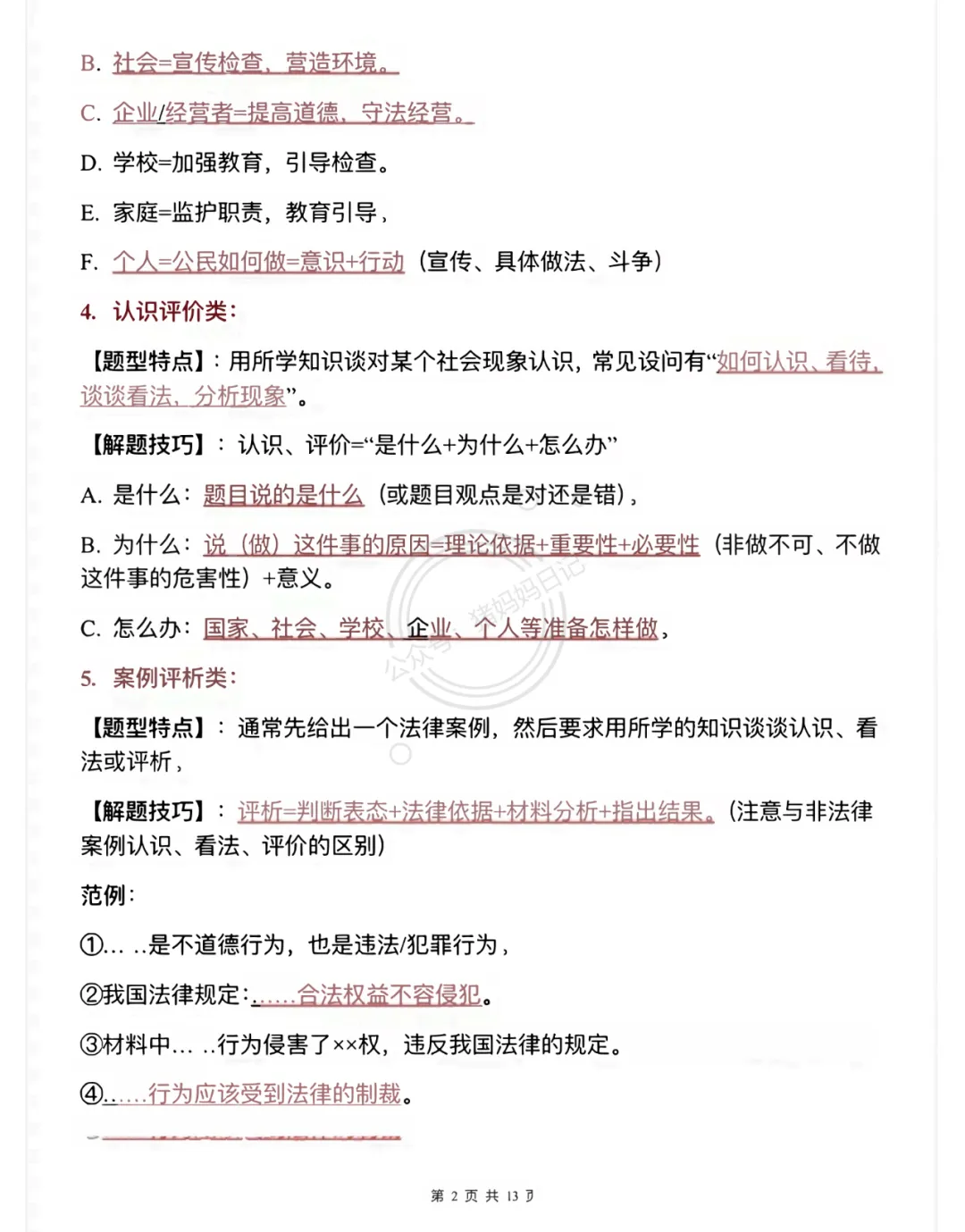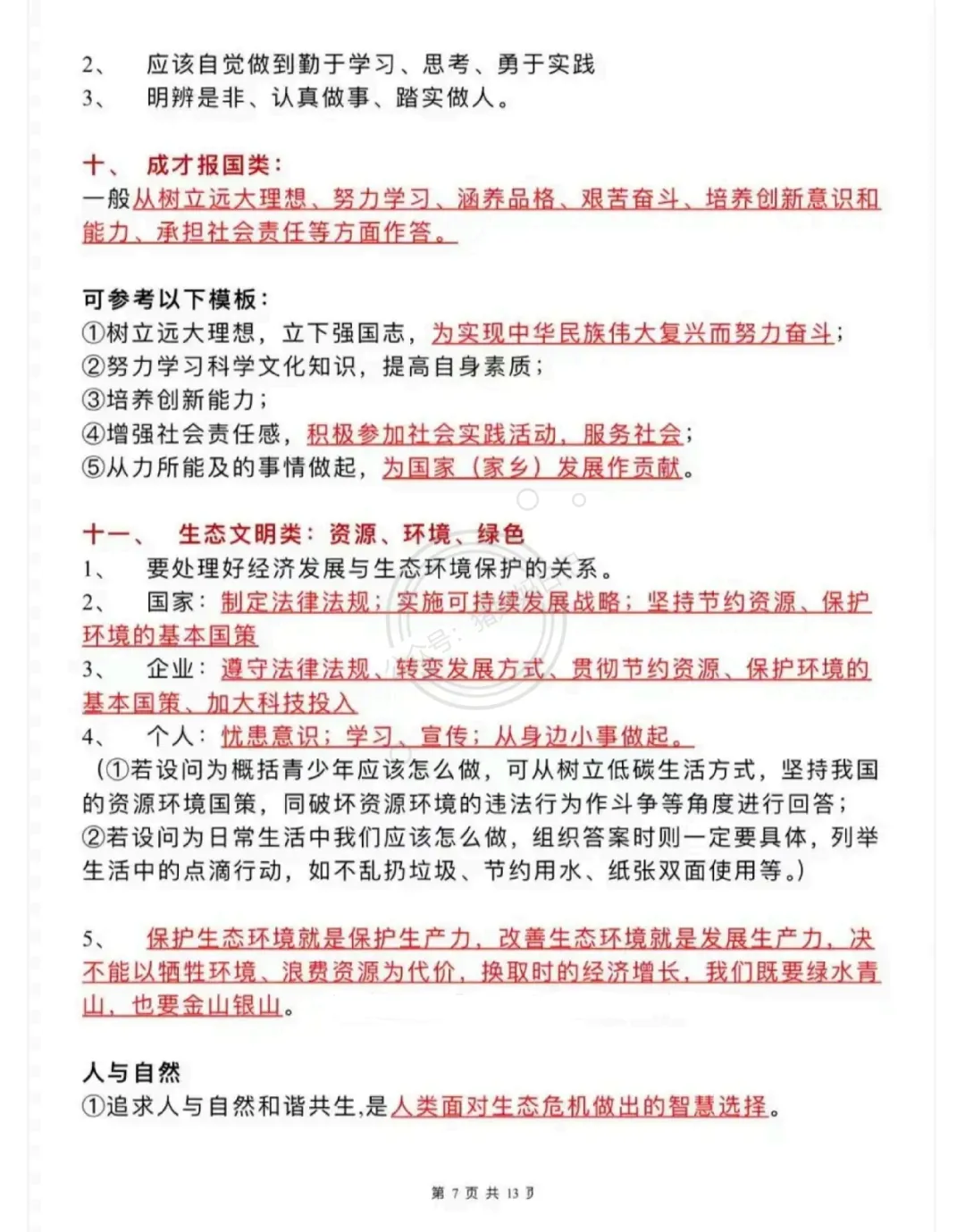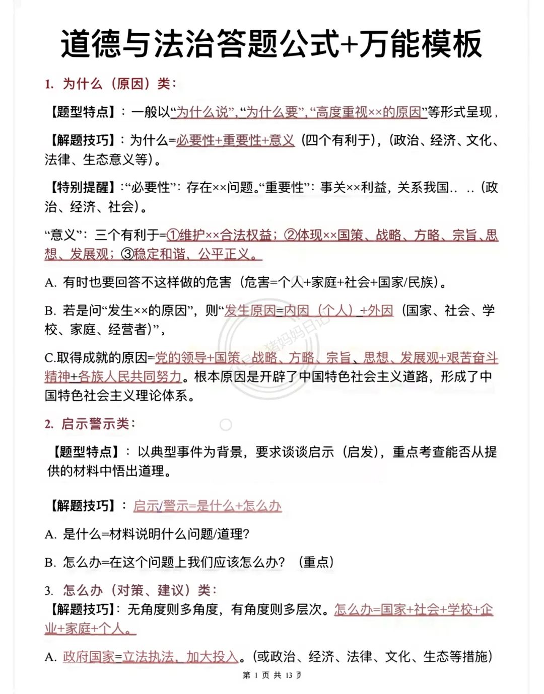 中考道德与法治答题公式+万能模版(通用版)【建议收藏】点击下方👇卡片关注我,设为⭐️标不迷路文|猪妈妈完整版可直接保存,需要文档的可留言订阅《猪妈妈日记》每日分享各科提分策略家庭教育|学习干货|学习资料向上生长,积蓄足够力量,静待枝繁叶茂#学习方法#学习计划#道法提分