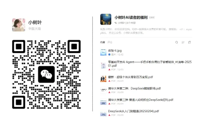 扫码加微信,领取小树叶的专属 AI 工具学习见面礼。