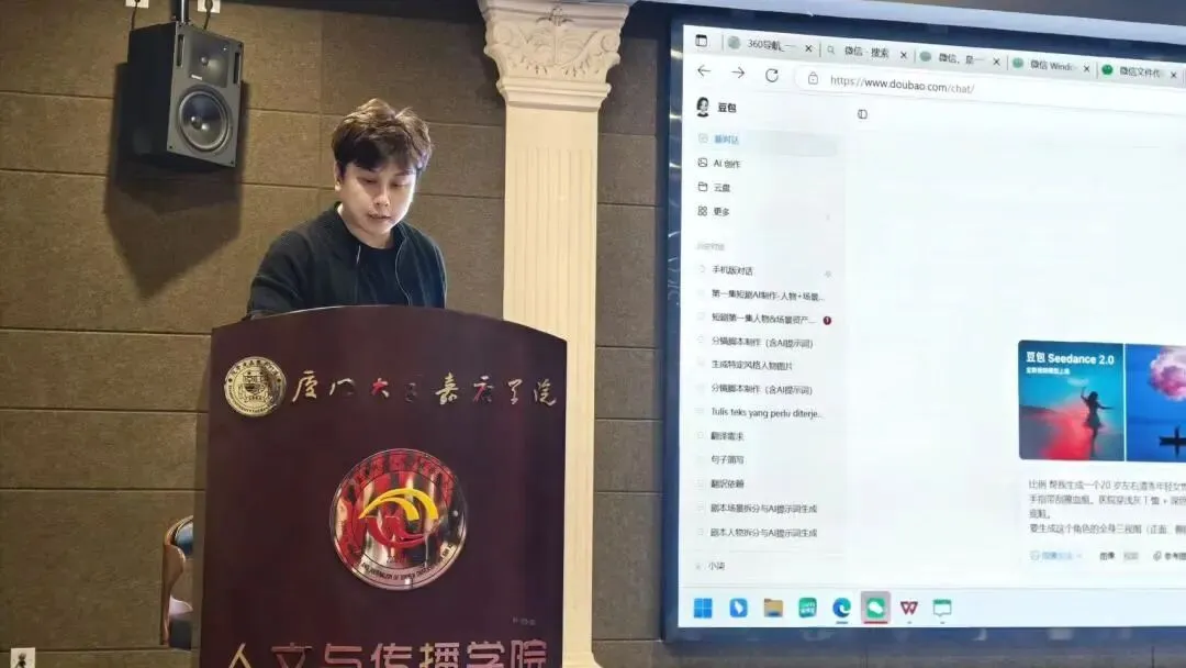 3月27日,嘉时π新媒体工坊主办的行业前沿AI漫剧制作学习会在主一教学楼如期举行。本次学习会特邀厦门零典零一动漫有限公司韩嘉文、林加烨两位行业资深从业者亲临主讲,两位嘉宾深耕动漫创作与AI漫剧制作领域多年,带着一线实战经验与行业核心干货走进文传院,为到场学子带来了一场兼具专业性、实用性与启发性的专题分享,让前沿AI创作技术真正走进校园课堂,点亮学子们的创作新思路。