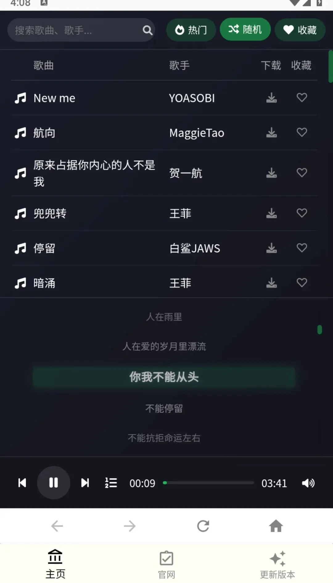 • 搜索播放:秒搜歌名/歌手/歌词,点即播,无需注册。