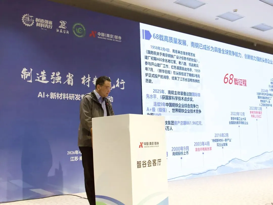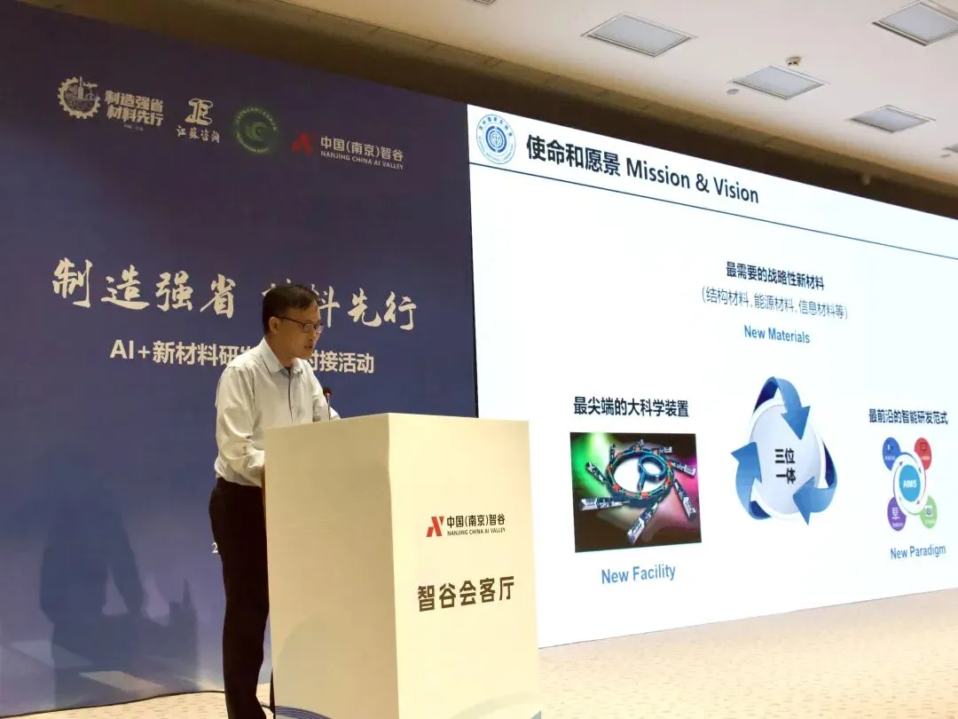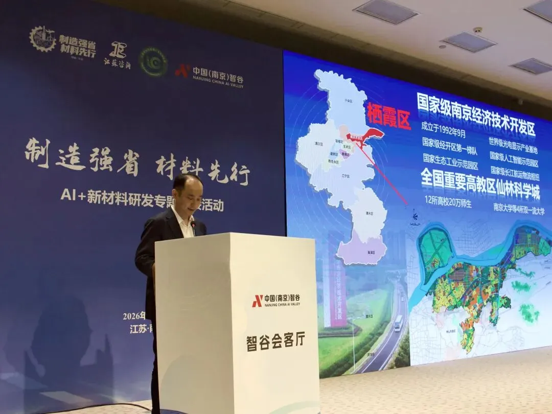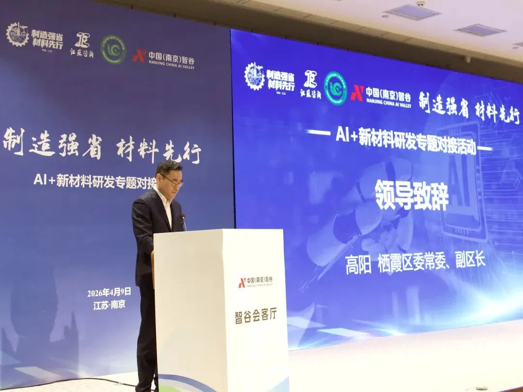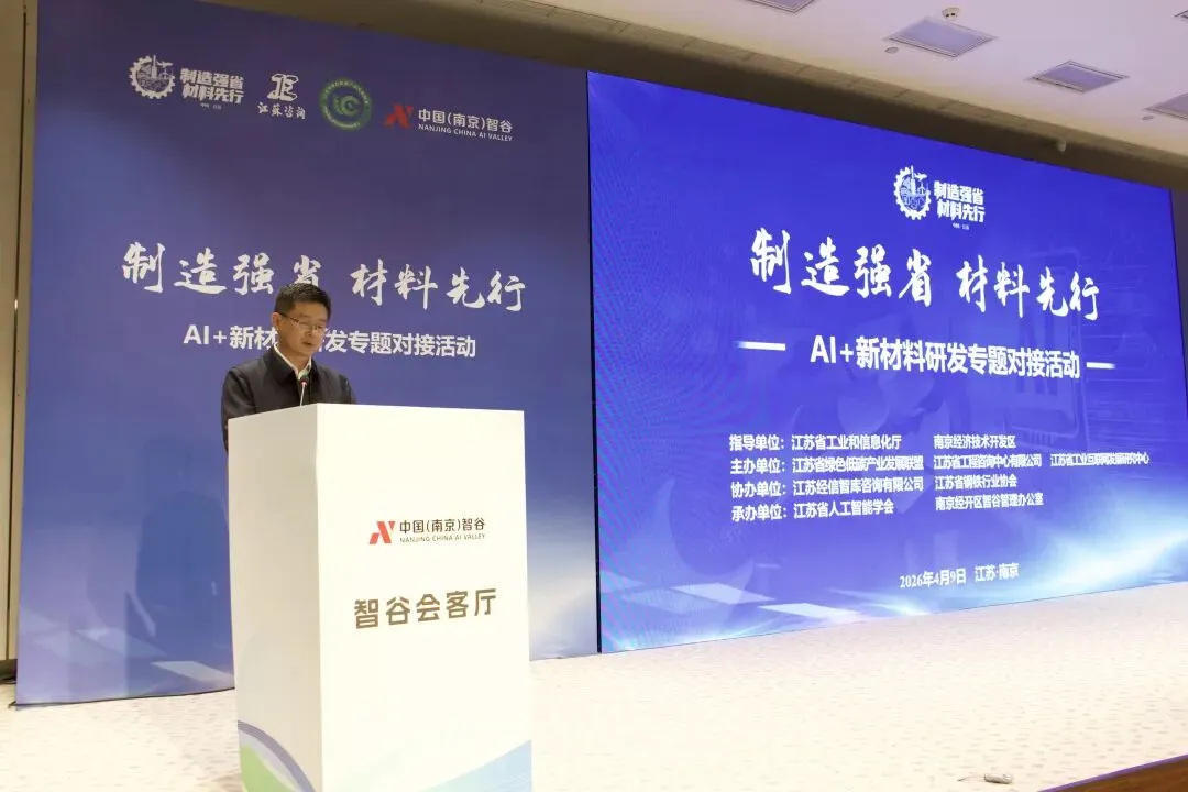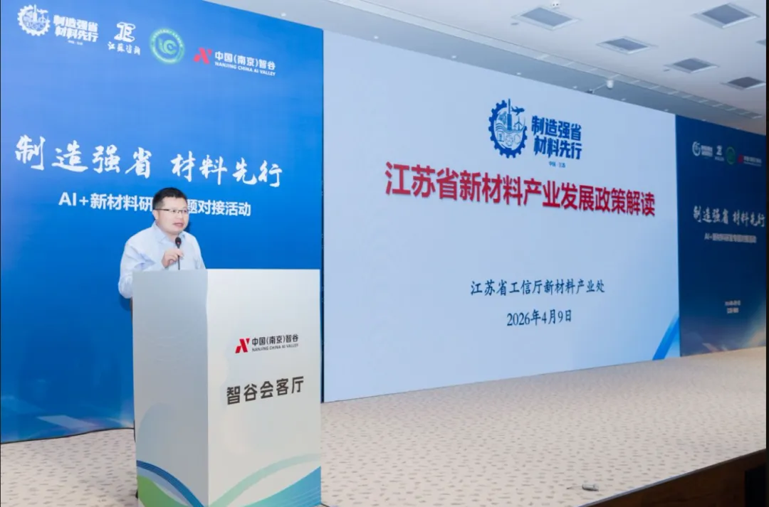 4月9日,“制造强省・材料先行”AI+新材料研发专题对接活动在南京市栖霞区隆重召开。本次活动以“推动新材料研发范式变革”为主题,紧扣国家“人工智能+”战略部署,深入落实江苏省制造业高质量发展要求,汇聚政、会、产、学、研、用多方力量,通过政策解读、资源推介、成果发布、专业分享与产融对接等环节,搭建起江苏省AI+新材料产业协同发展的高效平台,为全省新材料产业智能化转型、高质量发展注入强劲动能。