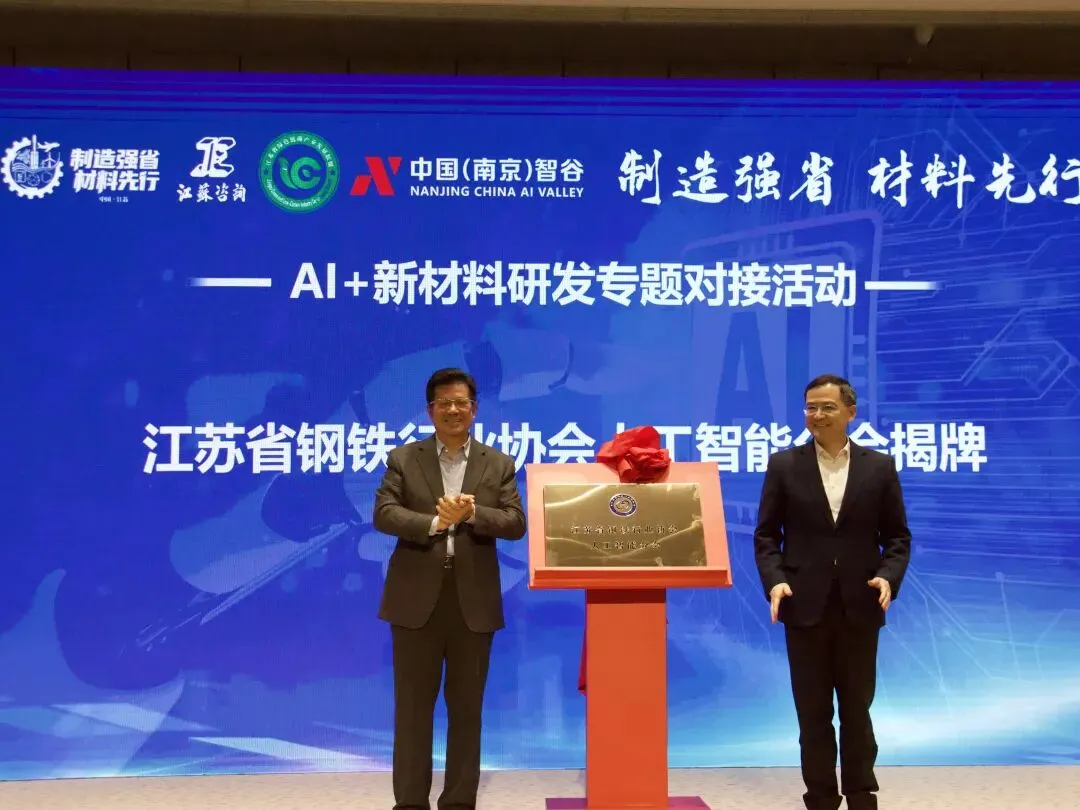 活动现场举行了多家机构揭牌及证书颁发仪式,为江苏AI+新材料产业融合发展搭建起全新的专业平台。王志忠与许晖共同为省绿色低碳产业发展联盟人工智能专业委员会揭牌;王志忠与孙海东共同为省钢铁行业协会人工智能分会揭牌。