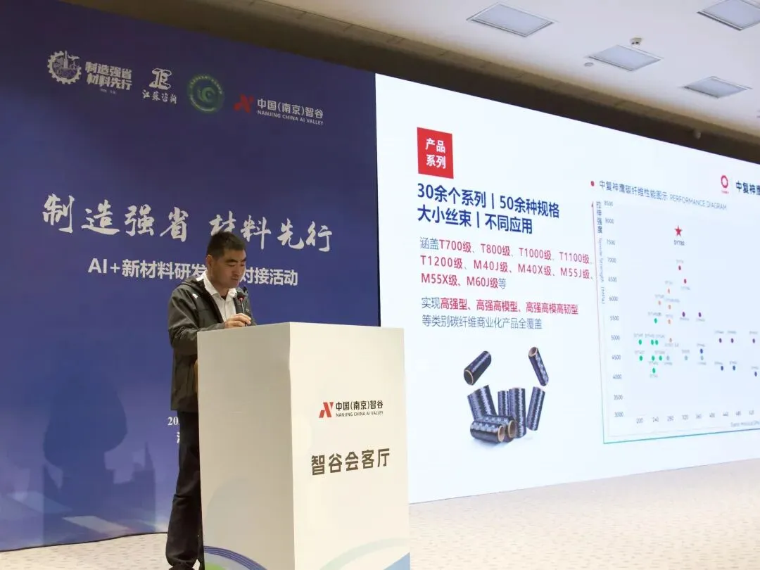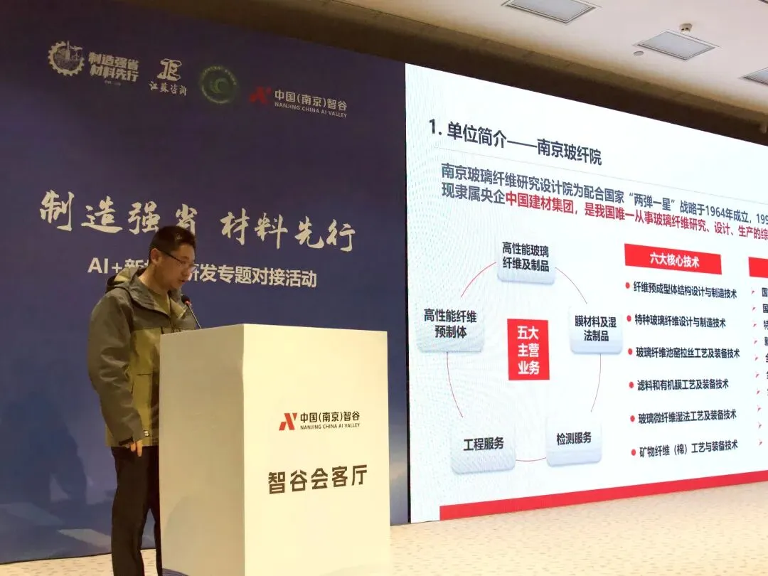 南京玻璃纤维研究设计院创新中心项目总工赵明分享了企业在AI+玻璃纤维材料领域的研发进展。