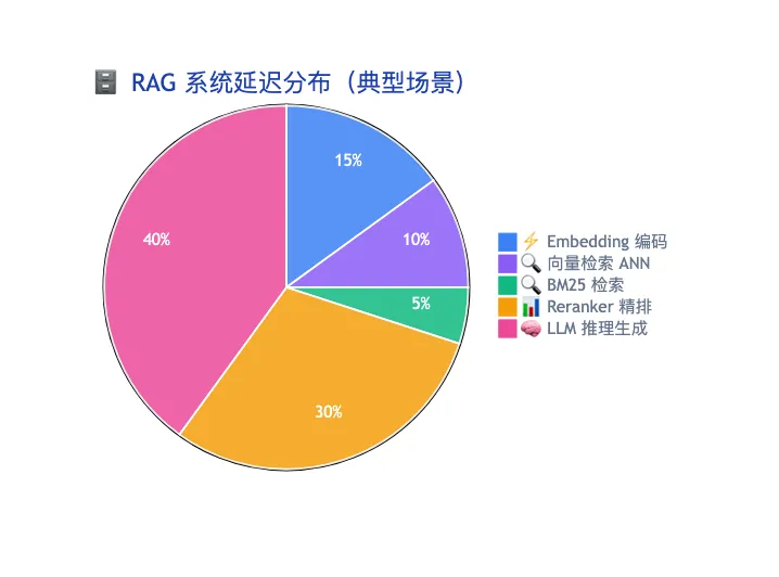 图 6:RAG 系统各环节延迟占比——LLM 推理和 Reranker 是主要瓶颈