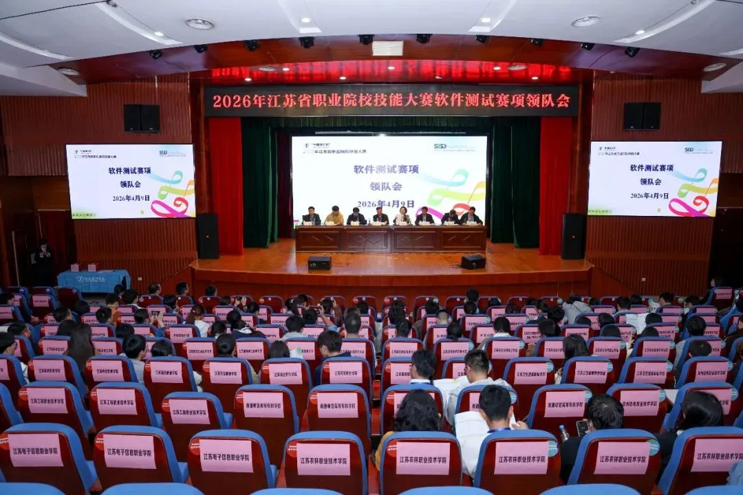 4月9日下午,2026年江苏省职业院校技能大赛新一代信息技术赛道·软件测试赛项领队会在我校善仁楼召开。本次大赛由江苏省教育厅、省发改委、省工信厅等15家单位主办,我校承办。大赛巡视员许李军、专家组长章晓芳、专家代表王子元、裁判长张卫丰、监督员刘庆华、联络员刘昭亮,我校党委副书记、校长权俊良,副校长冯瑞,全体领队、指导教师、参赛选手、技术支持企业代表以及我校相关工作人员共同参会。会议由许李军主持。