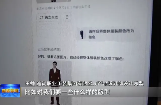 王帅说,去提供给AI指令,比如说要一些什么样的版型,什么样的色彩,运用什么样的面料。在几秒钟,它会给出来非常多,几十张或者几百张的这种图,供设计师选择。