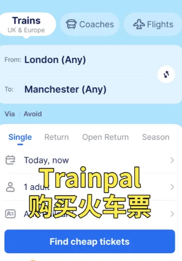 买火车票:I‘d like a single/return ticket to Manchester.(单程/往返)