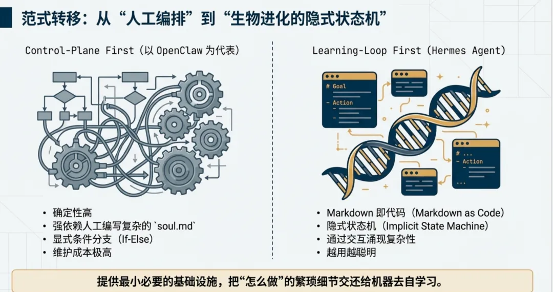 作为架构师,理解 Hermes 的第一步是跳出“流程编排”的思维,进入“生物演化”的逻辑。