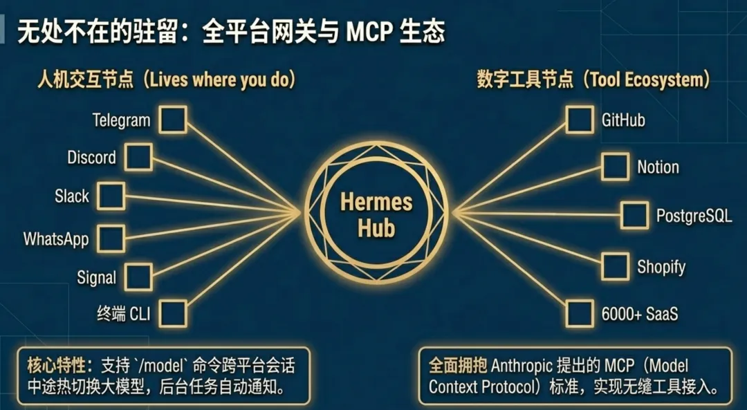 模块化设计是 Hermes 建立战略壁垒的关键。其“模型无关 (Model-Agnostic)”特性,有效对冲了企业的“供应商锁定 (Vendor Lock-in)”风险。