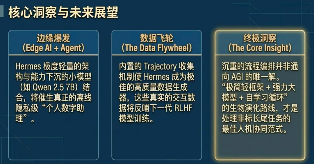 技术平权: Hermes 证明了,通过 Built-in Learning Loop,即使是资源有限的中小企业,也能拥有不断进化的数字大脑。