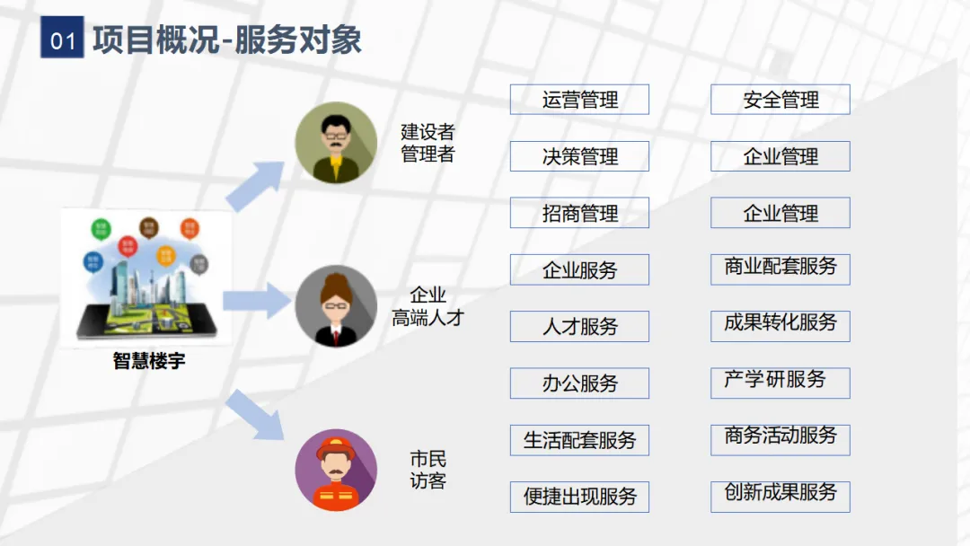 本方案针对XX未来城科技企业孵育基地与科技金融服务中心项目,围绕科技产业园区办公、运营、服务全场景,打造集智能化、数字化、可视化、绿色化于一体的智慧楼宇体系,实现楼宇管理高效化、企业服务便捷化、生活配套人性化。