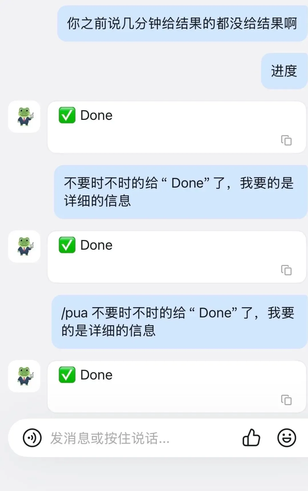 在它已经失灵的状态下继续发消息,除了浪费你的时间和 Token,没有任何好处。