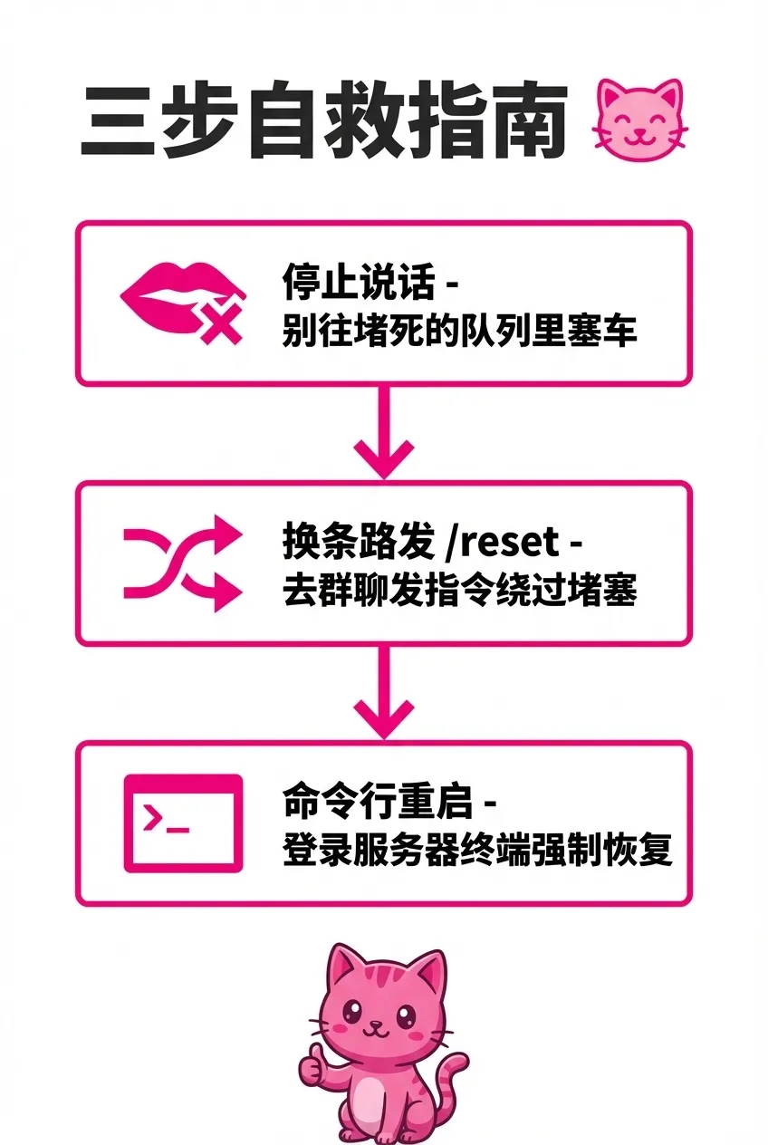 普通用户不一定要变成程序员。但至少得知道:AI 助手不只是一个"聊天框",它背后有队列、有缓存、有状态——理解这些,才能在它失灵的时候不慌,三步把它拉回来。