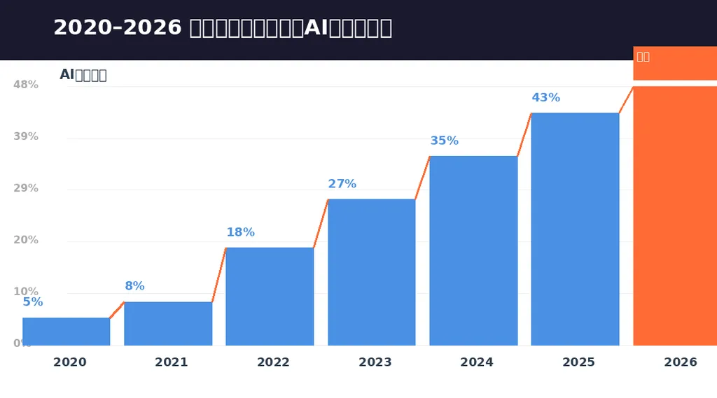 从2020年到2026年,AI在裁员中的"贡献度"从5%一路攀升至47.9%。这不是渐进,是陡增——尤其是2023年ChatGPT爆发之后,上升曲线近乎垂直。企业开始真正用AI替换人力,而不仅仅是裁员"讲故事"。