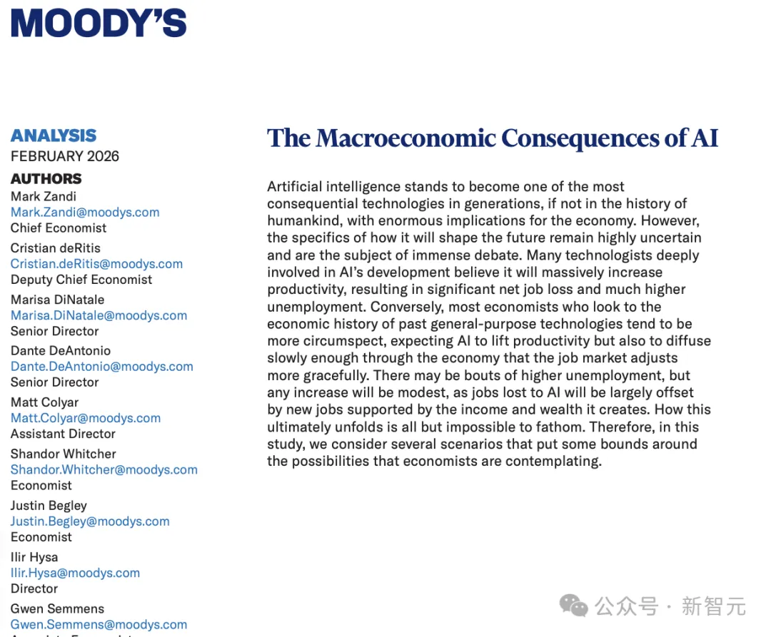 【导读】穆迪最新报告揭示了两条平行宇宙:要么AI让生产率狂飙,失业率降至3.8%;要么泡沫破裂,460万人失去饭碗。Anthropic CEO预警白领消亡,经济学家却说还没到时候。2026年1月创纪录的裁员数据,似乎正在验证前者。