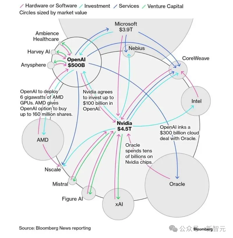 NVIDIA投资Oracle,Oracle转手用这笔钱买NVIDIA的芯片;微软注资OpenAI 130亿美元,OpenAI转身把钱付给Azure云服务。