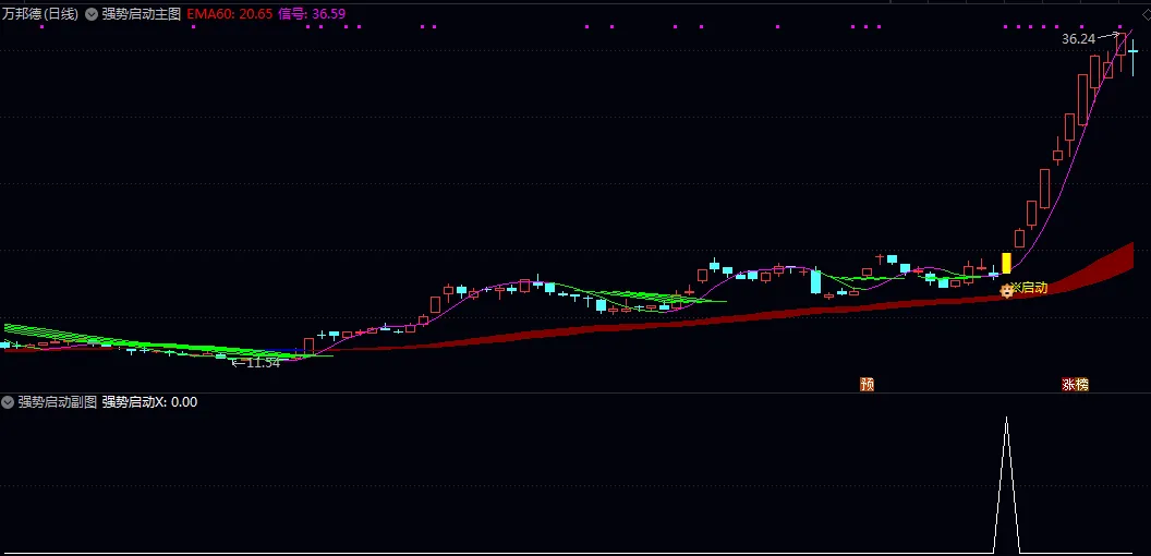 在近期AI应用、低空经济等板块轮动加速、涨停难持续的市场环境中,这套 【强势启动】 主图/副图/选股指标,并非简单地预测涨跌,而是通过 6大体系(量价均线、强弱RSV、MACD背离、五行趋势、通道带、涨停识别)的多重共振验证,帮你过滤80%的无效信号,系统化地筛选出三种典型机会: