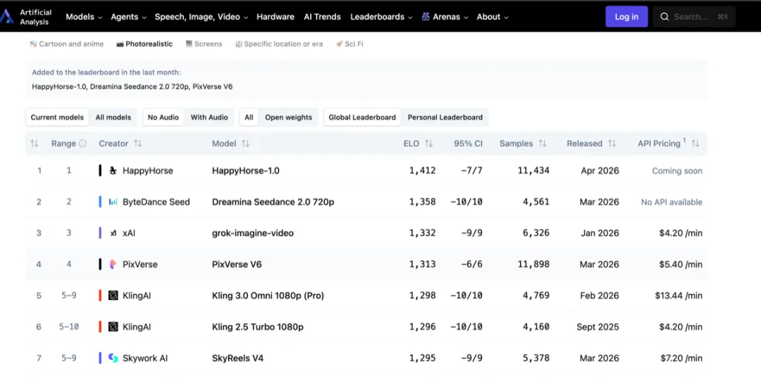 4 月 7 日,Artificial Analysis 的视频模型排行榜上出现了一个陌生的名字:HappyHorse-1.0。