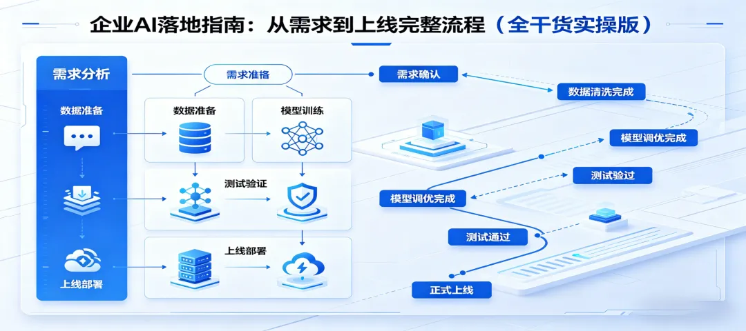 根据Gartner 2025年调研,超过60%的企业AI项目在试点阶段后未能规模化推广,核心原因并非技术难题,而是流程混乱、需求模糊、缺乏系统性思维。事实上,企业AI落地从来不是“技术堆砌”,而是一套“需求锚定→数据筑基→技术选型→试点验证→工程化上线→持续迭代”的闭环工程,每一步都有明确的实操标准和避坑要点。