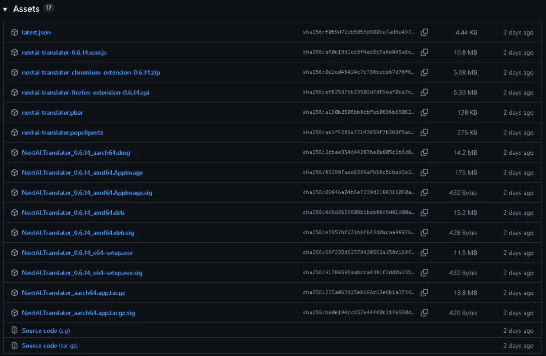 https://github.com/nextai-translator/nextai-translator/releases/tag/v0.6.14这里有不同版本可以选择